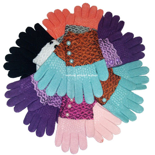 Перчатки с начёсом, украшены маленькими бусинками.