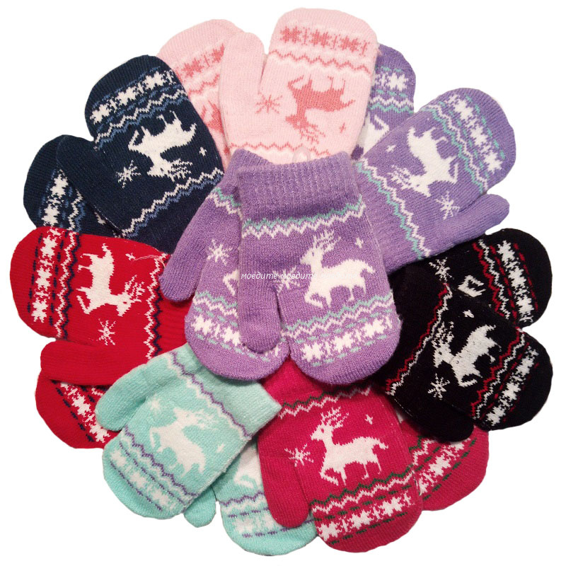 Варежки детские с начёсом "Олени" для деток от 1 до 2 лет.